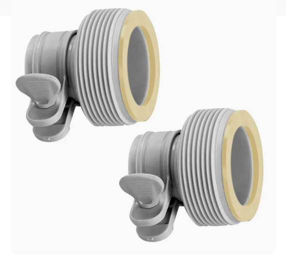El set imprescindible para adaptar una depuradora de arena o un sistema de filtración combinado con manguera de 38 mm a piscinas desmontables o modelos Easy Set cuyas conexiones originales son de 32 mm. El pack incluye 2 boquillas tipo B idénticas para adaptar a ambas conexiones de la piscina y poder acoplar así una conexión estrecha (32 mm) a una manguera más ancha (38 mm) . Cada adaptador está fabricado en plástico resistente en color gris. Incorporan en el extremo más estrecho una abrazadera ajustable y en el más ancho, una anilla de goma que garantiza la impermeabilización de la manguera y evita fugas de agua.
