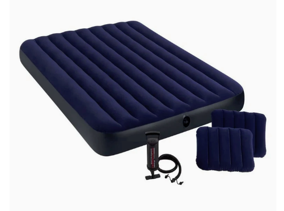 - Colchón doble INTEX Dura-Beam® Classic Downy, medidas 152x203x25 cm, soporta un máximo de 273 kg.