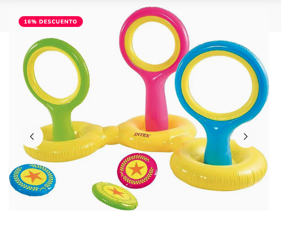 El inflable tiene una base amarilla que sirve para sujetar los tres postes con agujero central por donde los niños tratarán de pasar los discos y así ganar la partida. Está recomendado para niños a partir de 3 años bajo la supervisión de un adulto e incluye parche de reparación para reparar pequeños arañazos o poros.