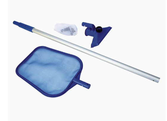 Pensado para piscinas de hasta 488 cm, el pack está formado por un mango telescópico, una malla de red y una boquilla aspiradora de fondo: un combo de tres accesorios que mantendrá la piscina limpia y libre de hojas, insectos, polvo y otros residuos.
