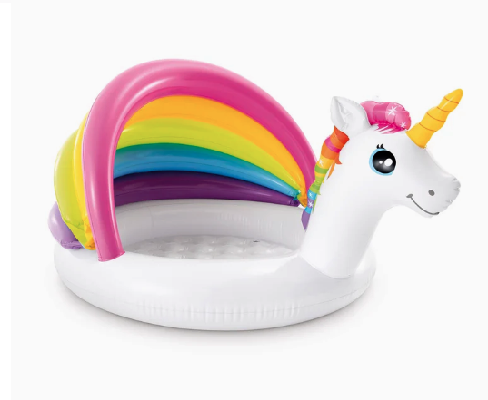La piscina de unicornio está preparada para que tu bebé sueñe e imagine divertidas historias fantásticas mientras se da un refrescante baño protegido del sol.